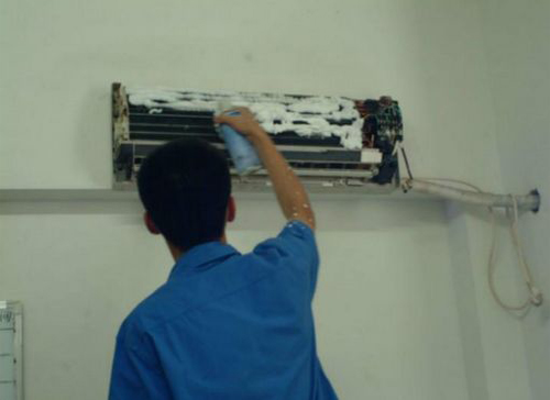 | 京山空调维修师傅给京山用户上门维修清洗空调。 |